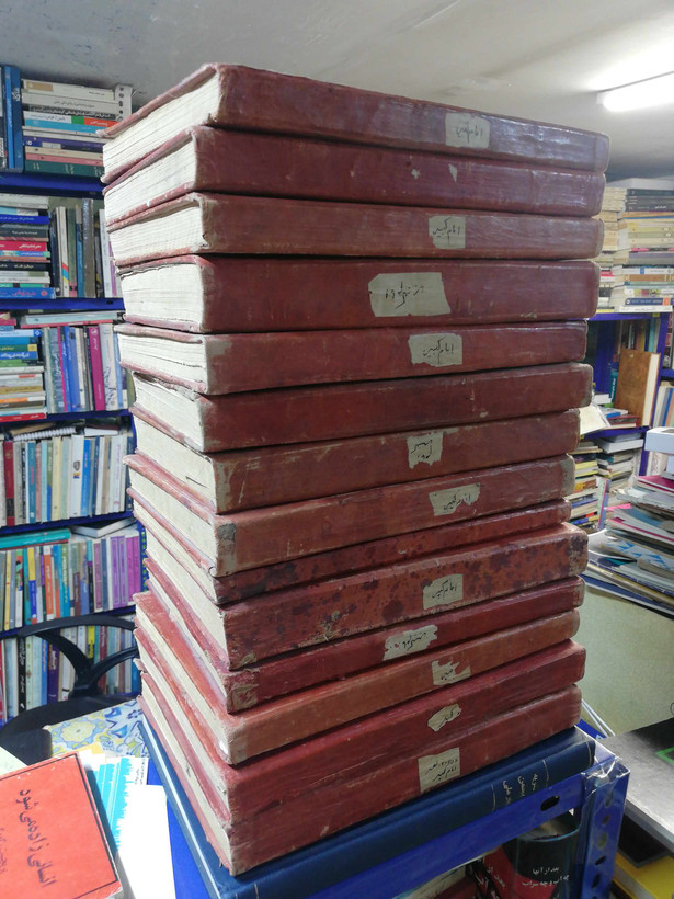 تاریخنامه طبری 14جلدی چاپ مصر 1290شمسی چاپ گراور سنگی جلد چرم طبیعی رحلی بزرگ سالم