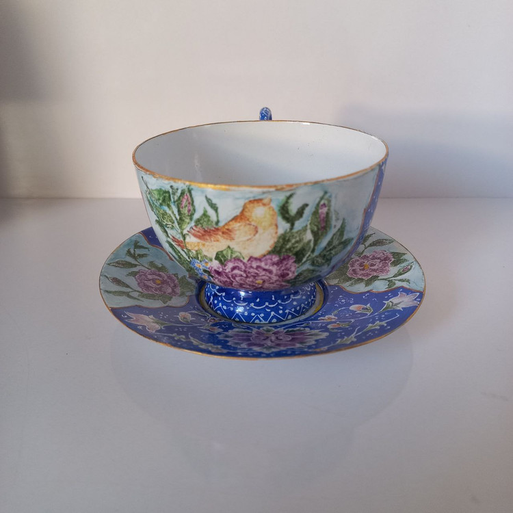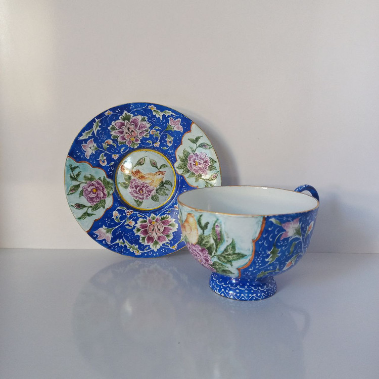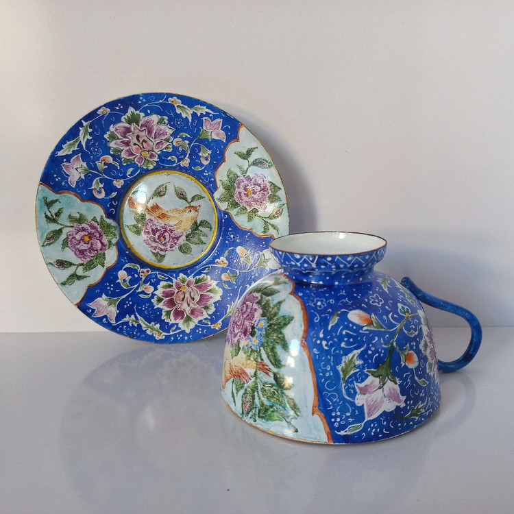 فنجان و نعلبک مینا کاری مسی قابل شستشو 160گرمی