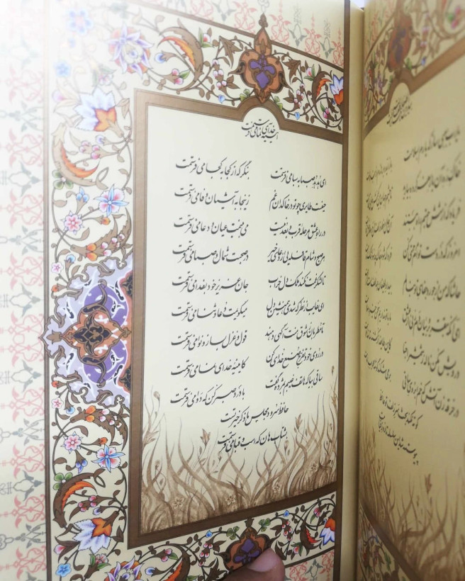 دیوان حافظ شیرازی. خط امیر حسین امیر خانی گلاسه وزیری مصور رنگی