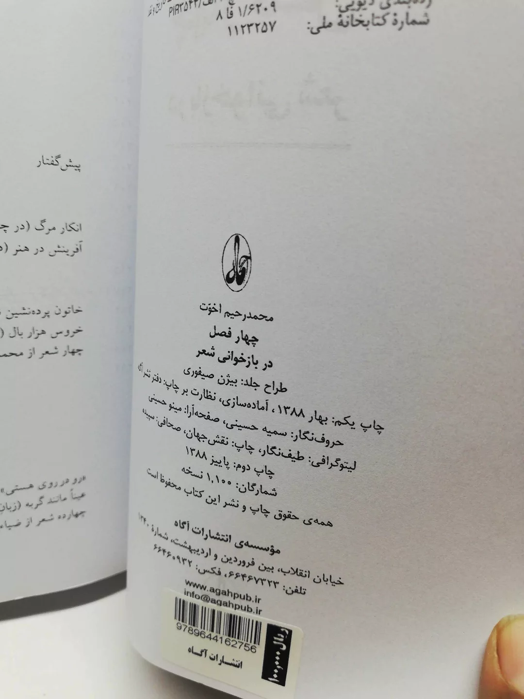 اصفهان_شفیعی اطلاع از از طریق و سایت ما در ترب از طریق سایت ویا شماره های ۰۳۱۳۲۲۲۰۲۲۱ یا مراجعه حضوری به فروشگاه نیما فروشگاه: اصفهان.خیابان چهارباغ عباسی. مجتمع تجاری چهارباغ. پلاک24و25 شفیعی.. دارای مجوز رسمی از وزارت فرهنگ ارشاد و اصناف سایت ما در ترب: https://nimabookonline.ir/ ما: https://www.instagram.com/nimabookonline کتاب نیما دارنده کتابهای قدیمی و دست دوم و نایاب از قاجار تا کنون و قسمتی هم نو.. البته کیفیت محصولات و هر سوالی داشتید از مابپرسید و سفارشی هم دارید از ما بخواهید. مستقیم یا از راه پیام.. این سایت درصد کوچکی از کتابهای ما است