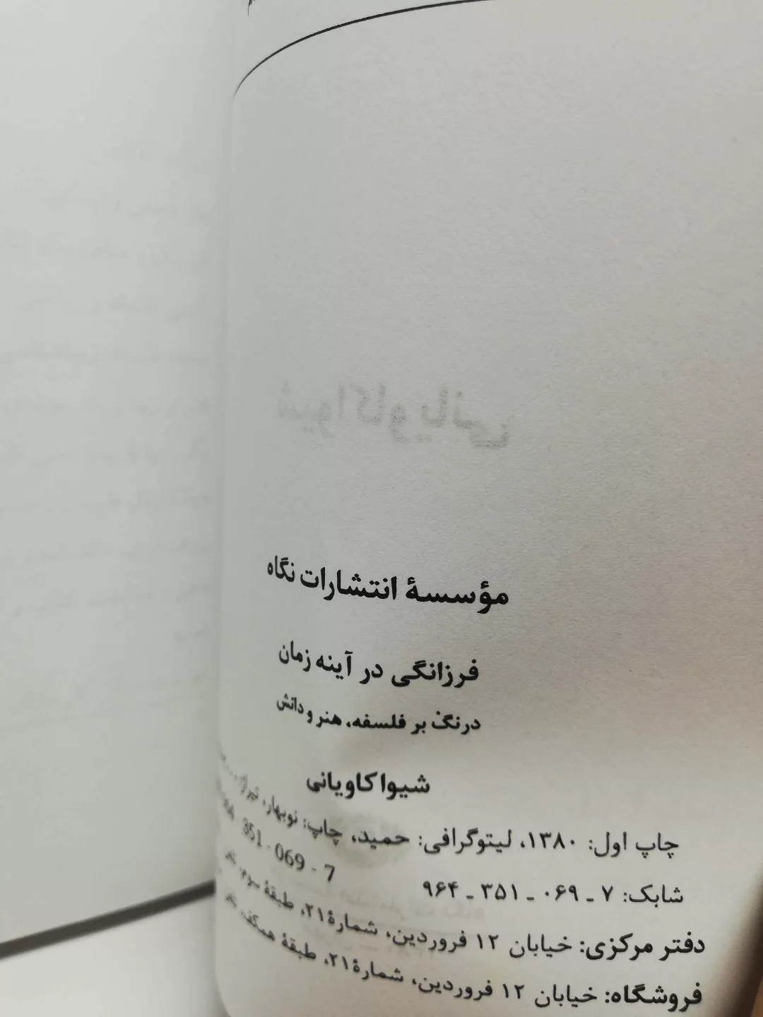 اصفهان_شفیعی اطلاع از از طریق و سایت ما در ترب از طریق سایت ویا شماره های ۰۳۱۳۲۲۲۰۲۲۱ یا مراجعه حضوری به فروشگاه نیما فروشگاه: اصفهان.خیابان چهارباغ عباسی. مجتمع تجاری چهارباغ. پلاک24و25 شفیعی.. دارای مجوز رسمی از وزارت فرهنگ ارشاد و اصناف سایت ما در ترب: https://nimabookonline.ir/ ما: https://www.instagram.com/nimabookonline کتاب نیما دارنده کتابهای قدیمی و دست دوم و نایاب از قاجار تا کنون و قسمتی هم نو.. البته کیفیت محصولات و هر سوالی داشتید از مابپرسید و سفارشی هم دارید از ما بخواهید. مستقیم یا از راه پیام.. این سایت درصد کوچکی از کتابهای ما است