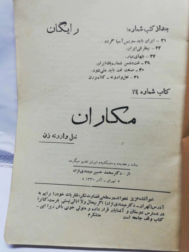 اصفهان_شفیعی اطلاع از از طریق و سایت ما در ترب از طریق سایت ویا شماره های ۰۳۱۳۲۲۲۰۲۲۱ یا مراجعه حضوری به فروشگاه نیما فروشگاه: اصفهان.خیابان چهارباغ عباسی. مجتمع تجاری چهارباغ. پلاک24و25 شفیعی.. دارای مجوز رسمی از وزارت فرهنگ ارشاد و اصناف سایت ما در ترب: https://nimabookonline.ir/ ما: https://www.instagram.com/nimabookonline کتاب نیما دارنده کتابهای قدیمی و دست دوم و نایاب از قاجار تا کنون و قسمتی هم نو.. البته کیفیت محصولات و هر سوالی داشتید از مابپرسید و سفارشی هم دارید از ما بخواهید. مستقیم یا از راه پیام.. این سایت درصد کوچکی از کتابهای ما است
