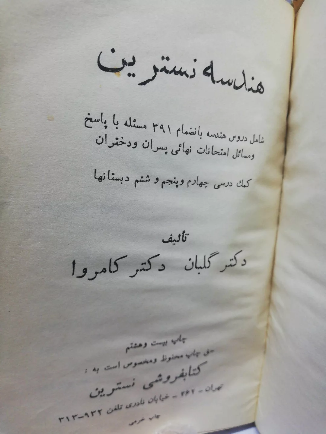 اصفهان_شفیعی اطلاع از از طریق و سایت ما در ترب از طریق سایت ویا شماره های ۰۳۱۳۲۲۲۰۲۲۱ یا مراجعه حضوری به فروشگاه نیما فروشگاه: اصفهان.خیابان چهارباغ عباسی. مجتمع تجاری چهارباغ. پلاک24و25 شفیعی.. دارای مجوز رسمی از وزارت فرهنگ ارشاد و اصناف کتاب_فلسفه رمان هنر روانشناسی کتاب_علمی معماری کتاب_مذهبی کتاب_قدیمی قاجار پهلوی باستان صفوی کتاب_کمیاب کتاب_نایاب چاپ_افست چاپ_ایران چاپ_خارج چاپ_سنگی کتاب_خطی سایت ما در ترب: https://nimabookonline.ir/ ما: https://www.instagram.com/nimabookonline فروشگاه_کتاب_نیماادبیات_تاریخ_فلسفه_رمان کتاب نیما دارنده کتابهای قدیمی و دست دوم و نایاب از قاجار تا کنون و قسمتی هم نو.. البته کیفیت محصولات و هر سوالی داشتید از مابپرسید و سفارشی هم دارید از ما بخواهید. مستقیم یا از راه پیام.. این سایت درصد کوچکی از کتابهای ما است