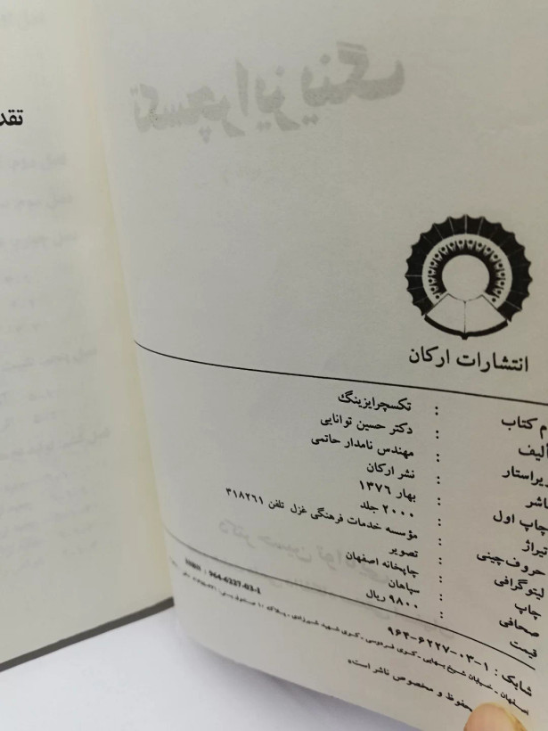 اصفهان_شفیعی اطلاع از از طریق و سایت ما در ترب از طریق سایت ویا شماره های ۰۳۱۳۲۲۲۰۲۲۱ یا مراجعه حضوری به فروشگاه نیما فروشگاه: اصفهان.خیابان چهارباغ عباسی. مجتمع تجاری چهارباغ. پلاک24و25 شفیعی.. دارای مجوز رسمی از وزارت فرهنگ ارشاد و اصناف کتاب_فلسفه رمان هنر روانشناسی کتاب_علمی معماری کتاب_مذهبی کتاب_قدیمی قاجار پهلوی باستان صفوی کتاب_کمیاب کتاب_نایاب چاپ_افست چاپ_ایران چاپ_خارج چاپ_سنگی کتاب_خطی سایت ما در ترب: https://nimabookonline.ir/ ما: https://www.instagram.com/nimabookonline فروشگاه_کتاب_نیماادبیات_تاریخ_فلسفه_رمان کتاب نیما دارنده کتابهای قدیمی و دست دوم و نایاب از قاجار تا کنون و قسمتی هم نو.. البته کیفیت محصولات و هر سوالی داشتید از مابپرسید و سفارشی هم دارید از ما بخواهید. مستقیم یا از راه پیام.. این سایت درصد کوچکی از کتابهای ما است