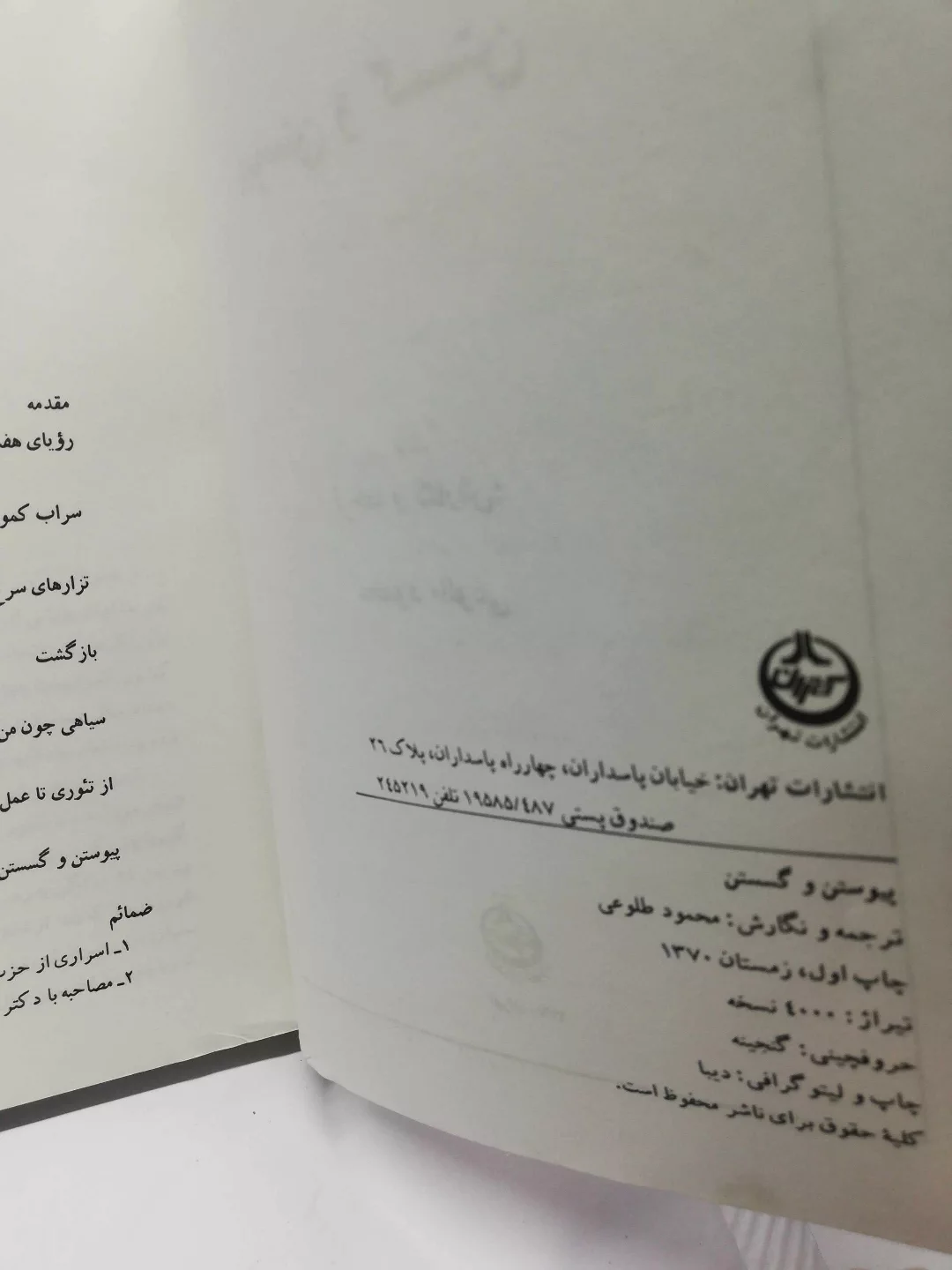 اصفهان_شفیعی اطلاع از از طریق و سایت ما در ترب از طریق سایت ویا شماره های ۰۳۱۳۲۲۲۰۲۲۱ یا مراجعه حضوری به فروشگاه نیما فروشگاه: اصفهان.خیابان چهارباغ عباسی. مجتمع تجاری چهارباغ. پلاک24و25 شفیعی.. دارای مجوز رسمی از وزارت فرهنگ ارشاد و اصناف هنر روانشناسی کتاب_علمی معماری کتاب_مذهبی کتاب_قدیمی قاجار پهلوی باستان صفوی کتاب_کمیاب کتاب_نایاب چاپ_افست چاپ_ایران چاپ_خارج چاپ_سنگی کتاب_خطی سایت ما در ترب: https://nimabookonline.ir/ ما: https://www.instagram.com/nimabookonline فروشگاه_کتاب_نیماادبیات_تاریخ_فلسفه_رمان کتاب نیما دارنده کتابهای قدیمی و دست دوم و نایاب از قاجار تا کنون و قسمتی هم نو.. البته کیفیت محصولات و هر سوالی داشتید از مابپرسید و سفارشی هم دارید از ما بخواهید. مستقیم یا از راه پیام.. این سایت درصد کوچکی از کتابهای ما است