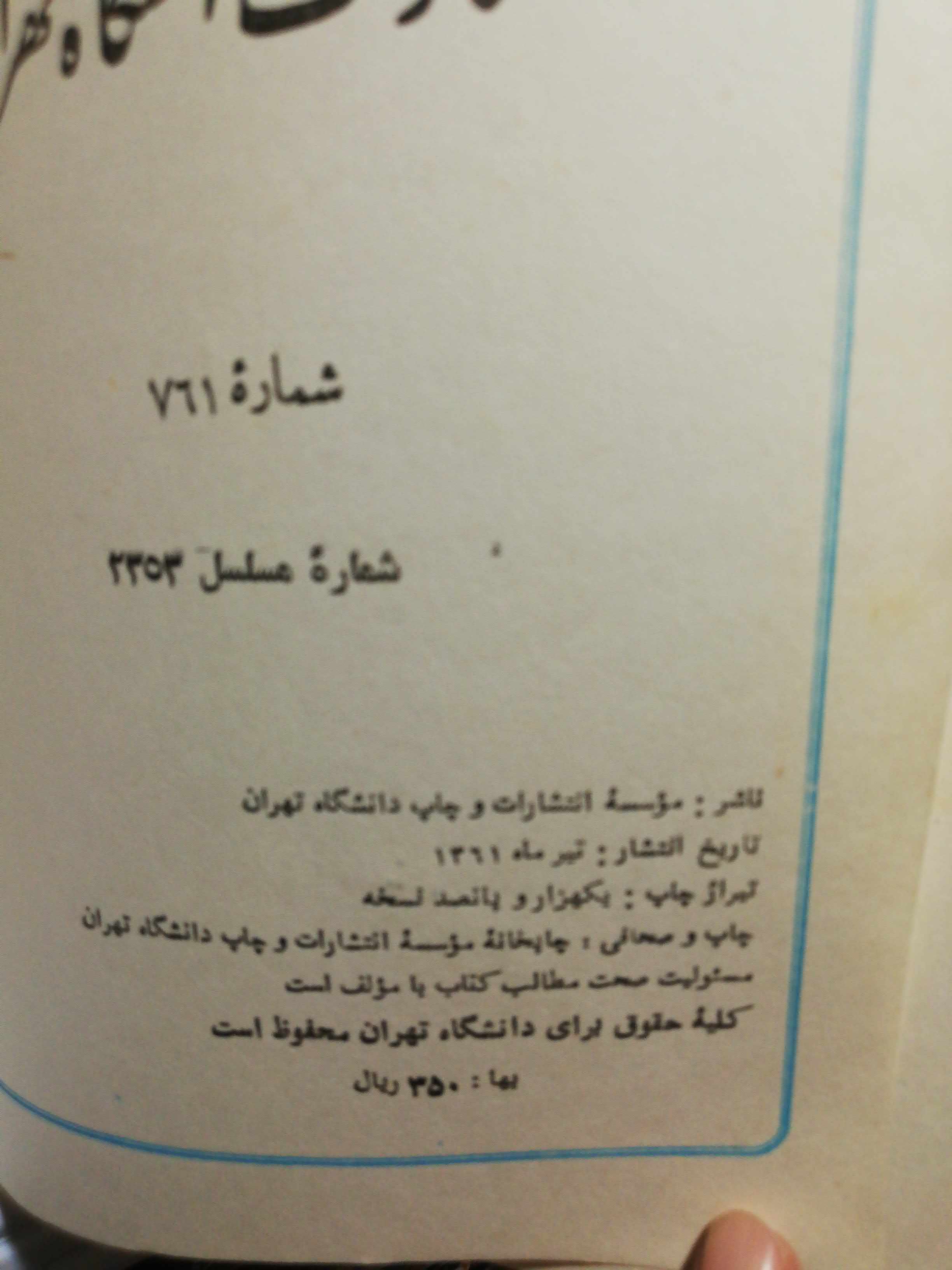 «فوری فوری. .ساعت کار ایام عید همه روزه و قبول سفارشات... ((((سوالی داشتید بپرسید از چاپ و کیفیت. قدیمی و نو.مشاوره برای خرید. با تلفن. پیامک. ایتا)))))کتاب نیما.اصفهان با مدیریت شفیعی 35سال سابقه و 100هزار کتاب از قاجار تا کنون. چاپ خارج.. تهیه سفارشات و خرید کتابخانه شما.