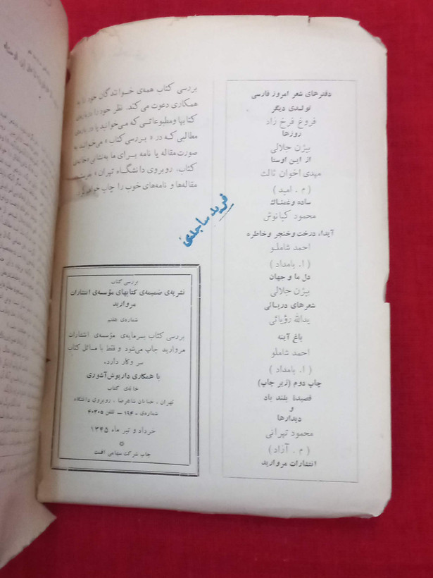 «فوری فوری. .ساعت کار ایام عید همه روزه و قبول سفارشات... ((((سوالی داشتید بپرسید از چاپ و کیفیت. قدیمی و نو.مشاوره برای خرید. با تلفن. پیامک. ایتا)))))کتاب نیما.اصفهان با مدیریت شفیعی 35سال سابقه و 100هزار کتاب از قاجار تا کنون. چاپ خارج.. تهیه سفارشات و خرید کتابخانه شما.